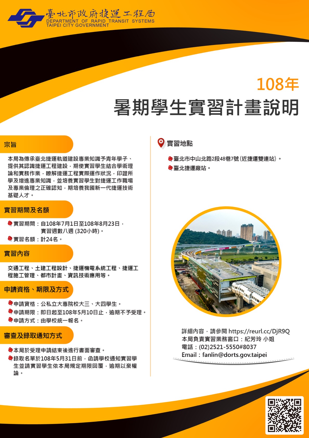 臺北市政府捷運工程局辦理108 年暑期學生實習案