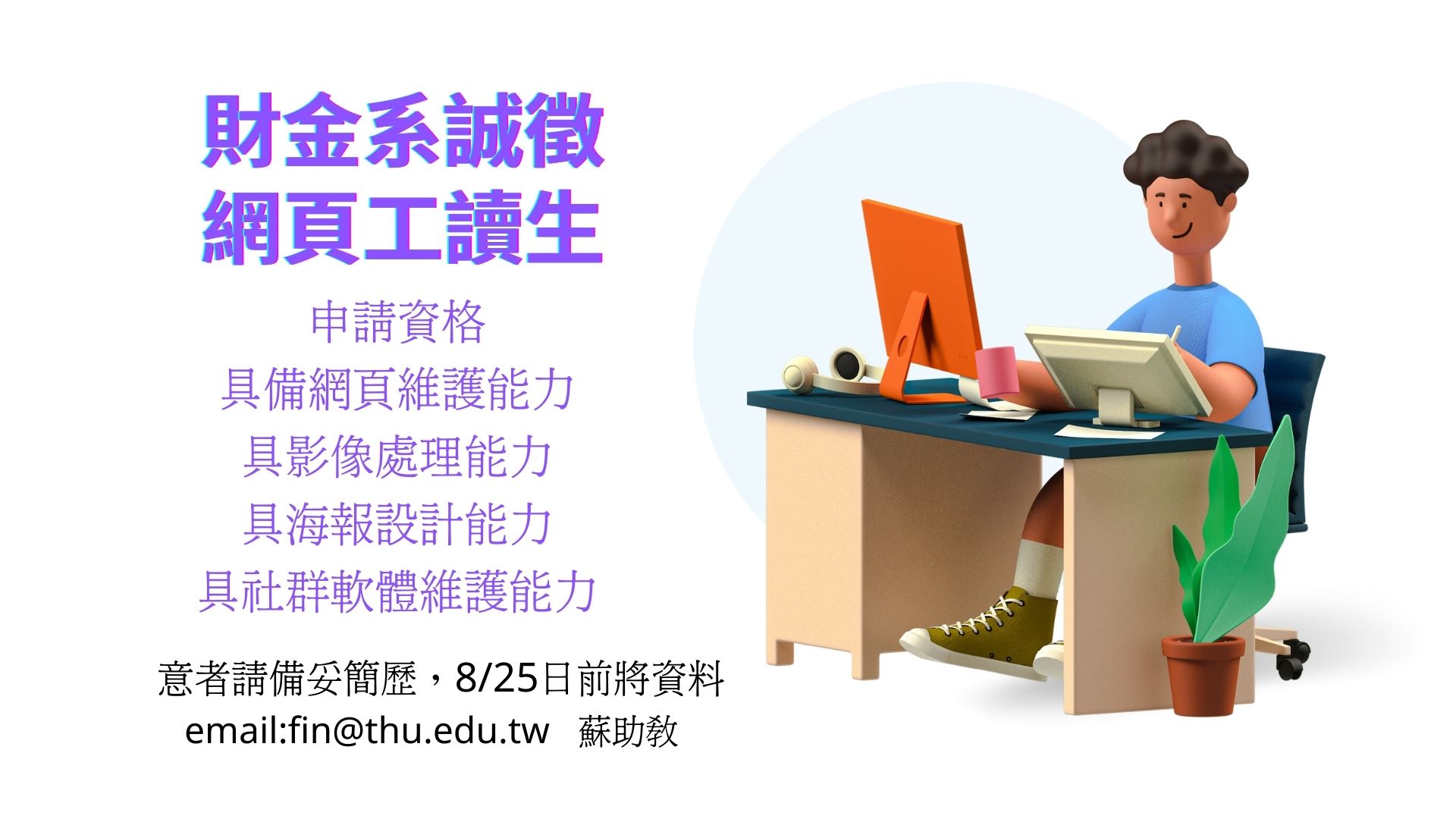 東海大學財金系徵聘網頁維護工讀生~8/25