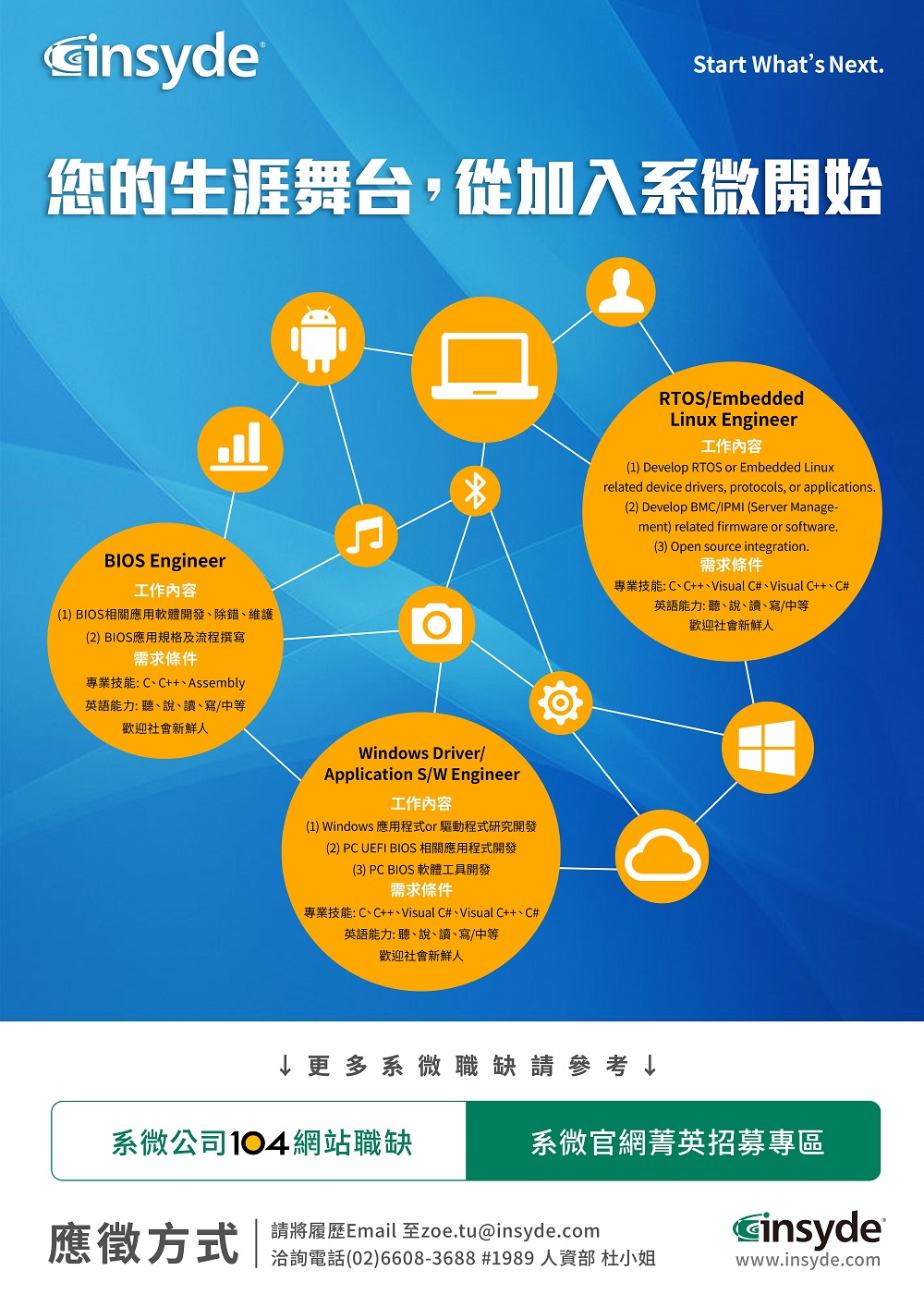 系微官網菁英招募專區 :https://www.insyde.com/zh-hant/careercenter/join