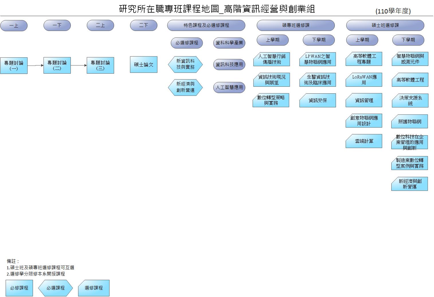 110 學年度研究所在職專班高階資訊經營與創業組必修科目表