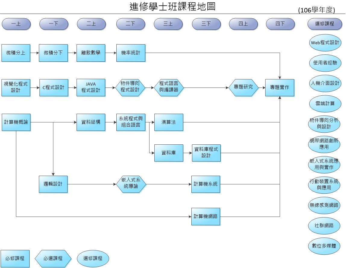 ※課程地圖為課程修習建議,實際修習科目及規定依各學年必修科目表及修課規定為準。