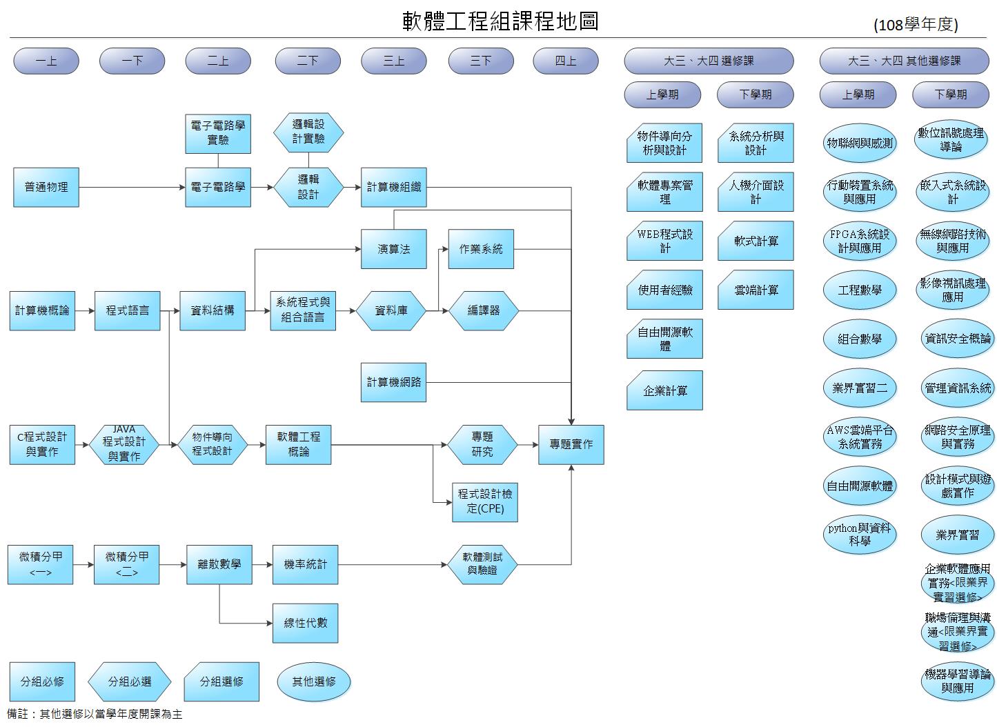 ※課程地圖為課程修習建議,實際修習科目及規定依各學年必修科目表及修課規定為準。