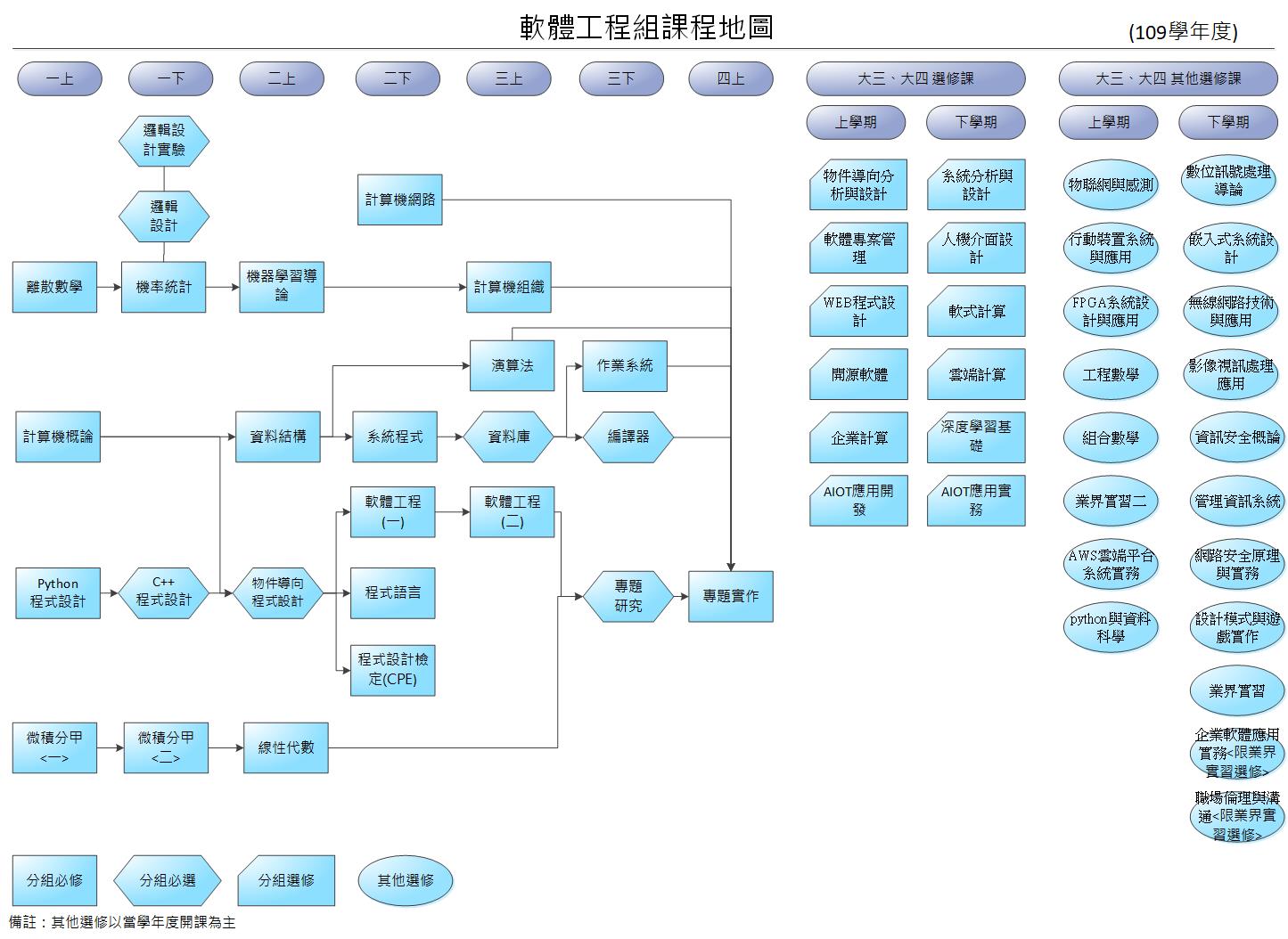 ※課程地圖為課程修習建議,實際修習科目及規定依各學年必修科目表及修課規定為準。