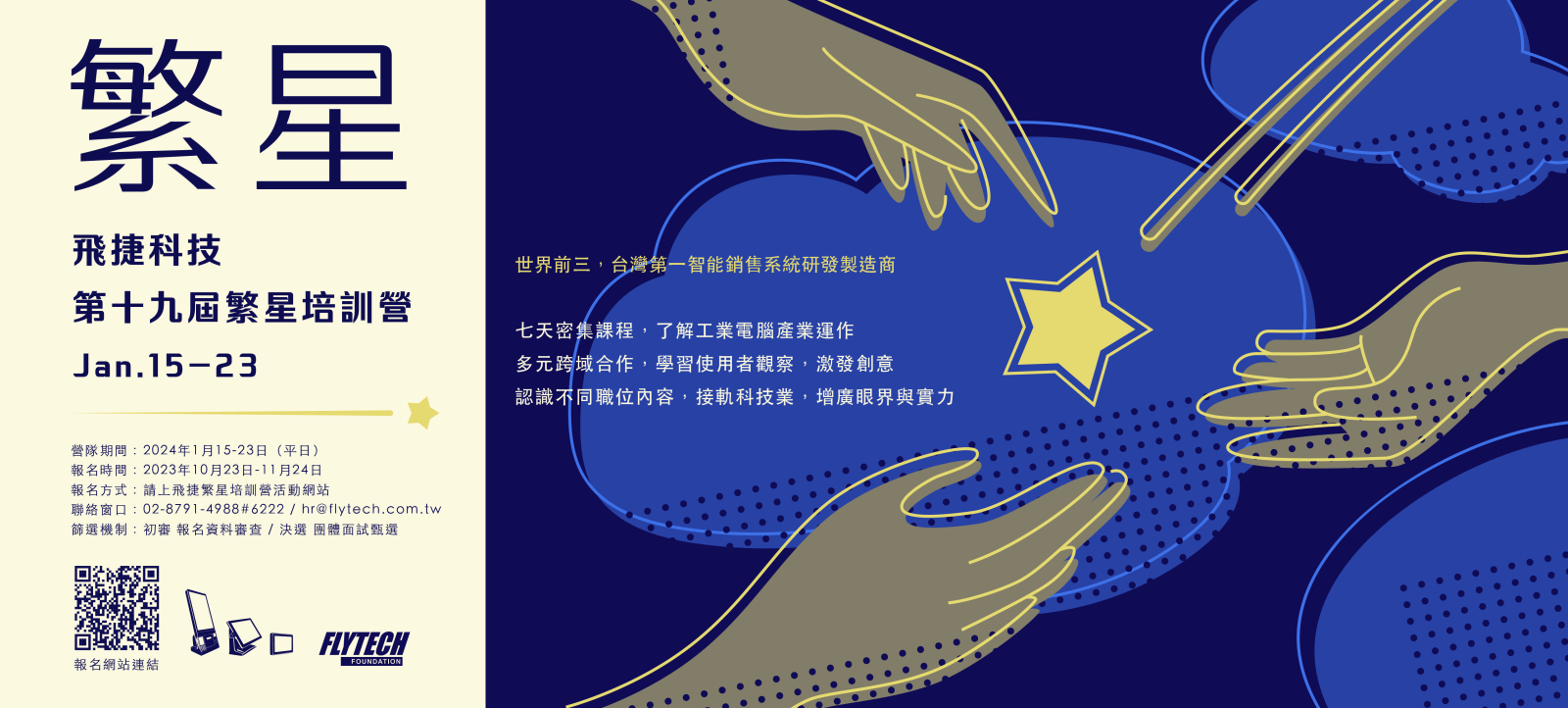 飛捷科技將於明年一月份舉辦第19屆飛捷繁星培訓營活動,活動報名於即日起~11/24(五)23:59截止。
