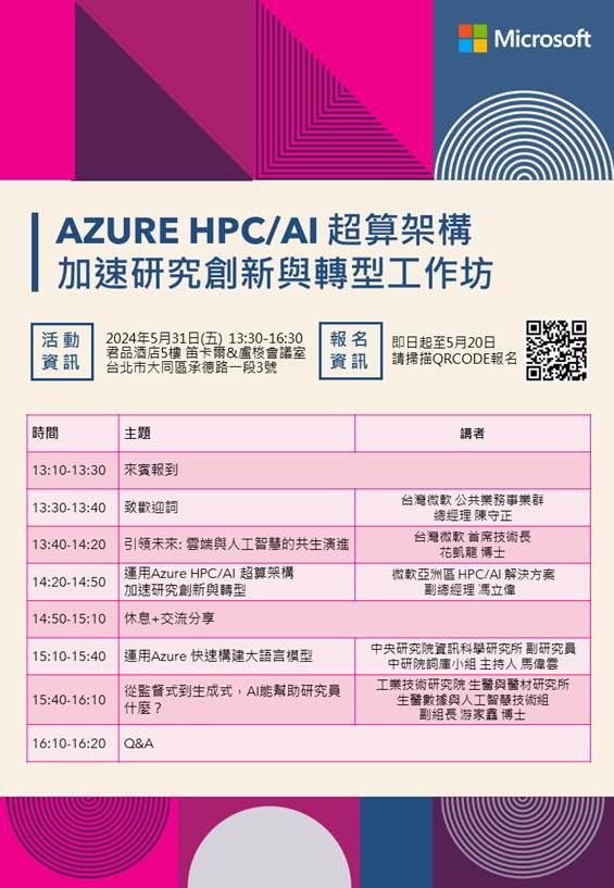 誠摯地邀請您參加微軟HPC/AI超算架構工作坊。讓您能夠深入了解如何利用HPC技術加速您的產業創新。在工作坊中,您將有機會與專家交流,並獲得實踐經驗,探索如何將這些強大的計算能力應用實務中。期待您的參與!