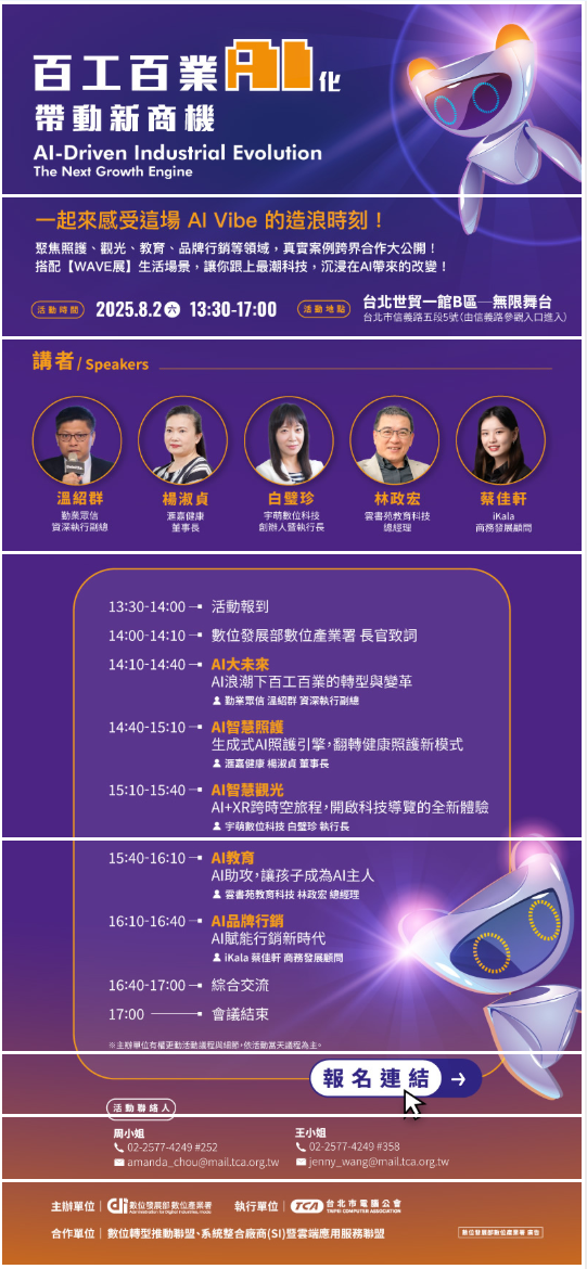 【免費參加】結合亞太最大AI產業生態系展會AI WAVE SHOW:百工百業AI化.帶動新商機 趨勢論壇