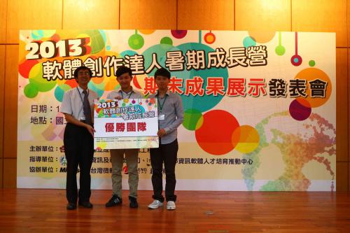 由成功大學主辦,教育部指導及補助的「2013軟體創作達人暑期成長營」,經過兩個月暑假由專家緊湊的輔導開發,於2013/06/15公布第一階段審核,次於2013/08/07公布通過第二階段審核名單,最後於2013/09/13在國立臺灣科技大學國際大樓IB-101教室,舉行期末成果評估展示發表會。參與評審的委員以國內資訊軟體相關廠商資深經理人、資深工程師為主,包括微軟、華碩、趨勢科技等,並從29個專案開發團隊評選出3隊特優團隊及8隊優勝團隊。除了獲得教育部頒發5萬至7萬元不等的獎金,來自不同產業與開放社群的20餘位評估委員也將慷慨提供額外業界實習機會或獎金給優秀開發團隊。
