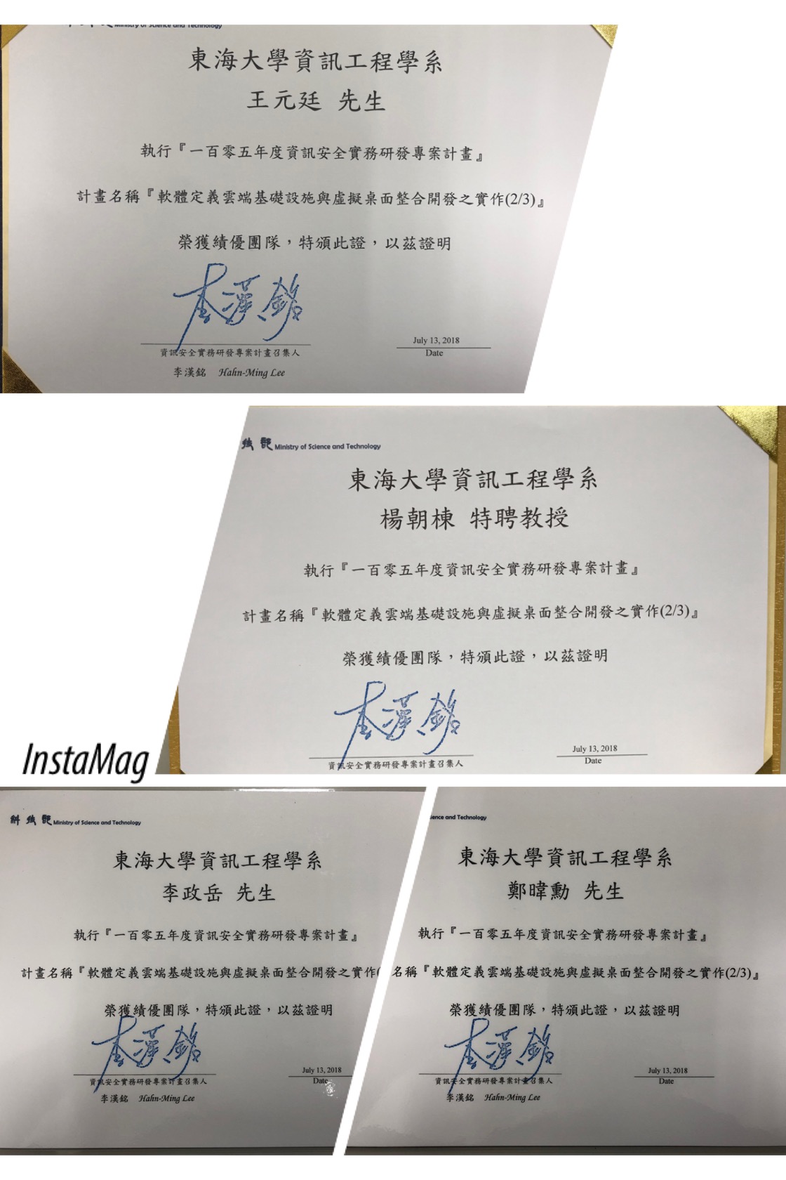團隊成員:東海大學資訊工程系王元廷先生、李政岳先生、鄭瑋勳先生、