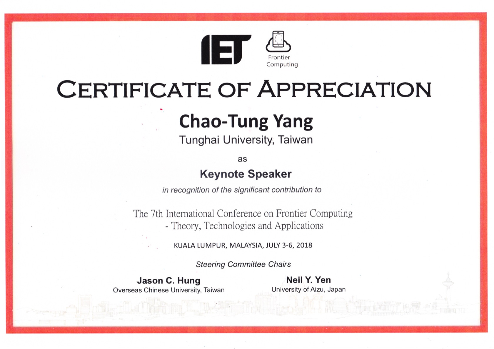 恭喜本系師生團隊參加2018 The 7th International Conference on Frontier Computing,榮獲FC 2018 Best paper awards!