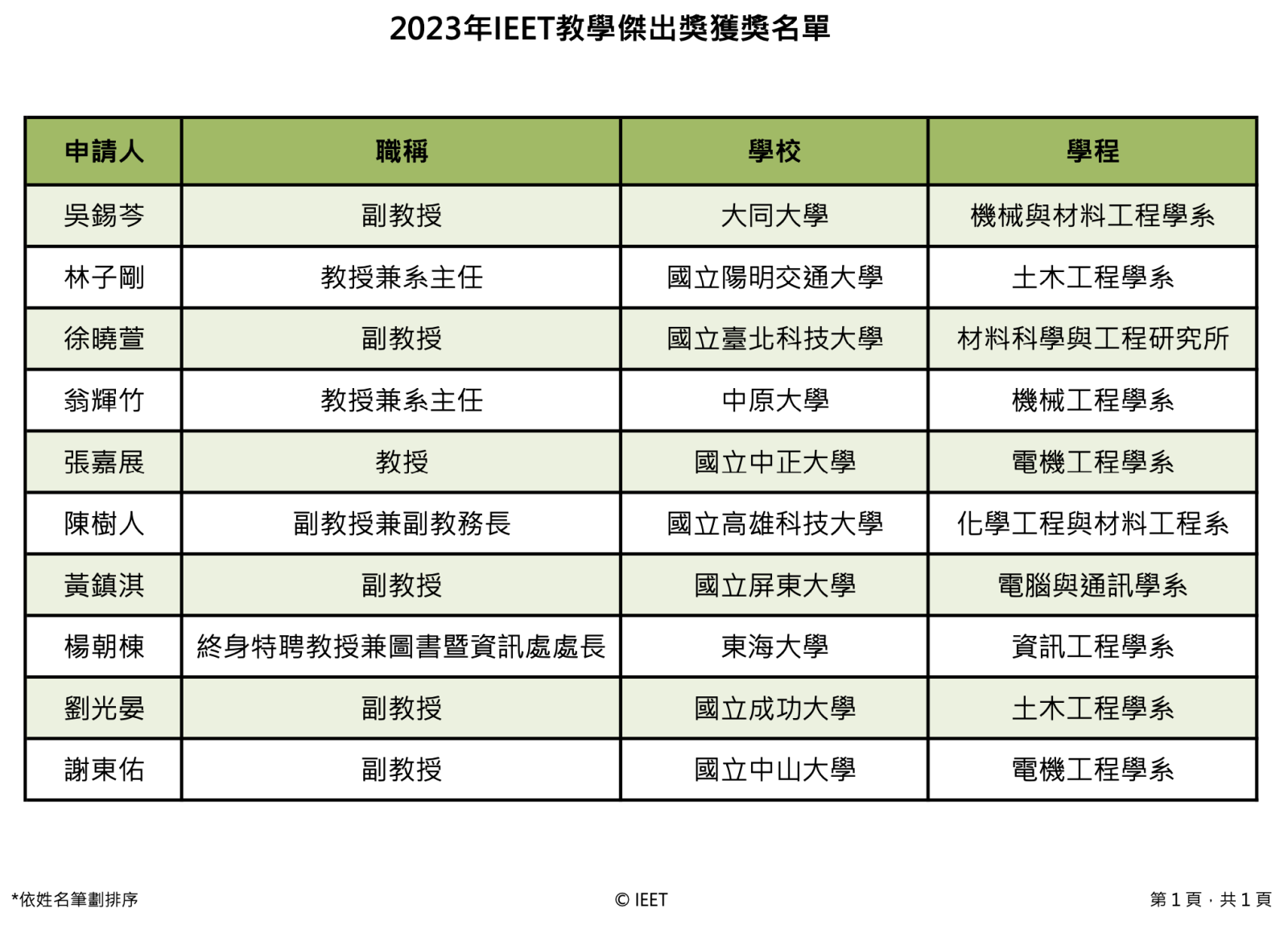 賀! 本系楊朝棟老師榮獲 IEET教學傑出獎