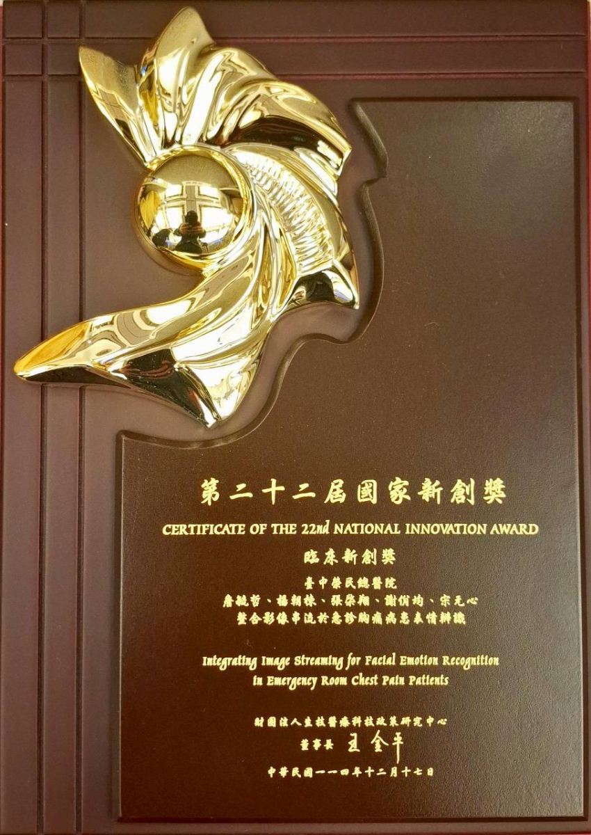 獲獎題目:整合影像串流於急診胸痛病患表情辨識