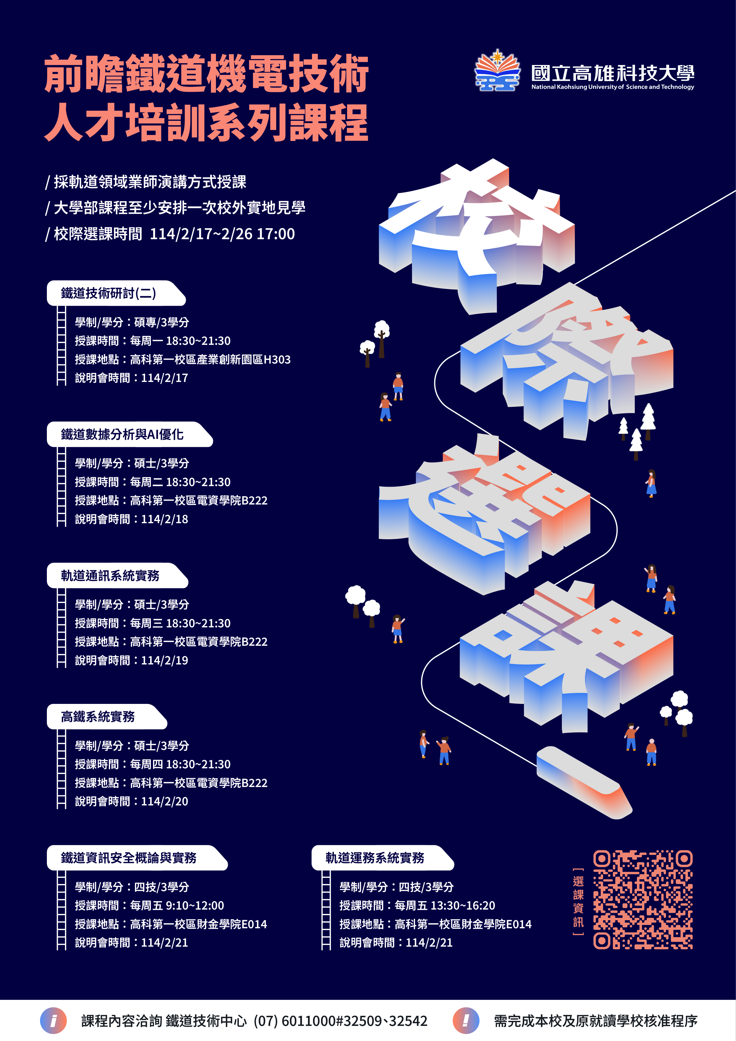 三、前揭課程皆由業師授課,且大學部課程將安排至軌道機廠 實地教學,歡迎有興趣的同學進行選讀。