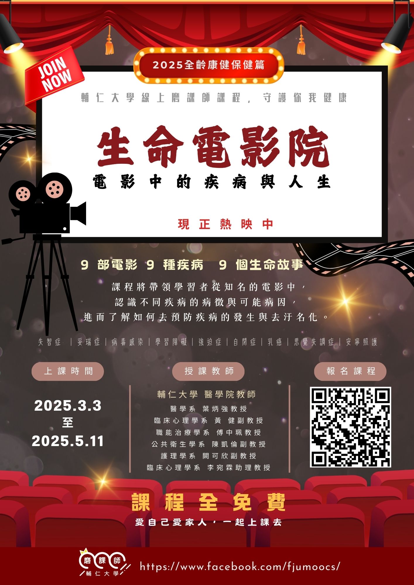 二、課程由本校醫學院教授群授課,透過電影媒介帶領學習者認識不同疾病的病徵與可能原因,並藉由電影中的角色了解如何以正面的態度面對疾病的發生、接受治療與獲得支 持。