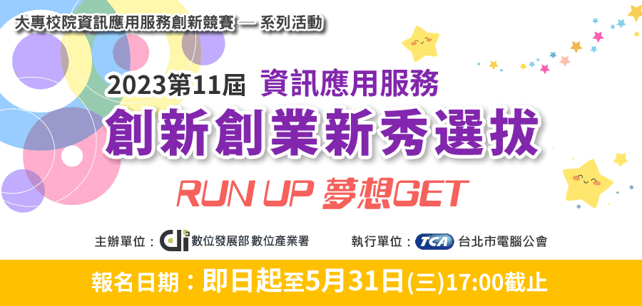 本年度「資訊應用服務創新創業新秀選拔」已經開始了,收件至5月30日17:00截止(線上報名) 活動網址: https://image.tca.org.tw/unblock/EDM1120512103010/ 報名網址:https://newtalent.tca.org.tw/Home/RegisterAgreement 本年度獲獎之團隊提供專家諮詢服務,協助申請或轉介相關政府計畫資源補助,優質新創組第一名之團隊可獲得6萬元獎勵金,詳情參考如下EDM,謝謝!!