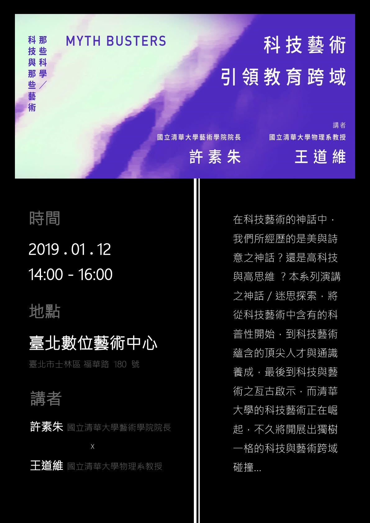 臺北數位藝術中心《Myth(Busters): 那些科學/科技與那些藝術》系列講座
