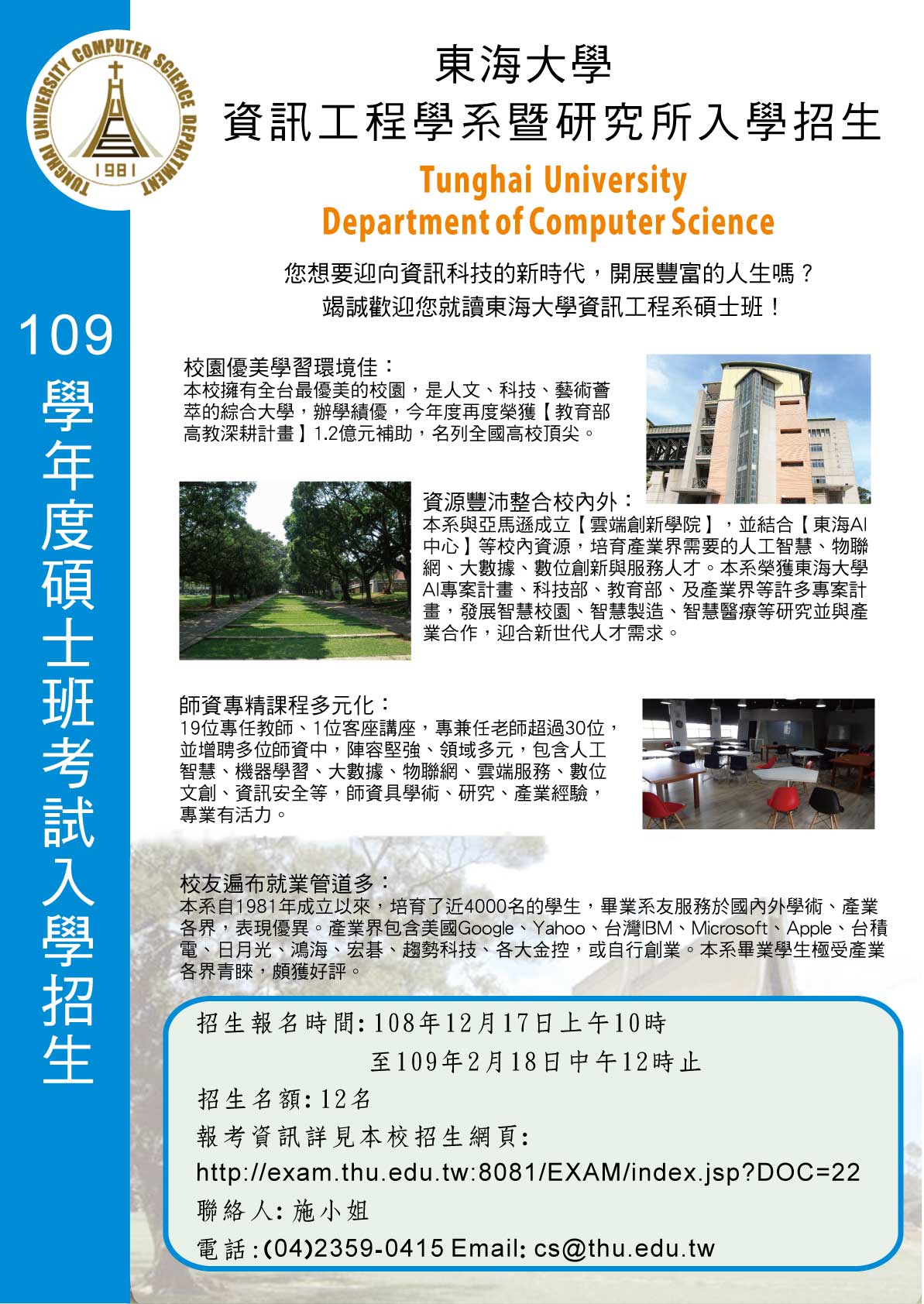 109學年度資訊工程學系碩士班考試入學招生