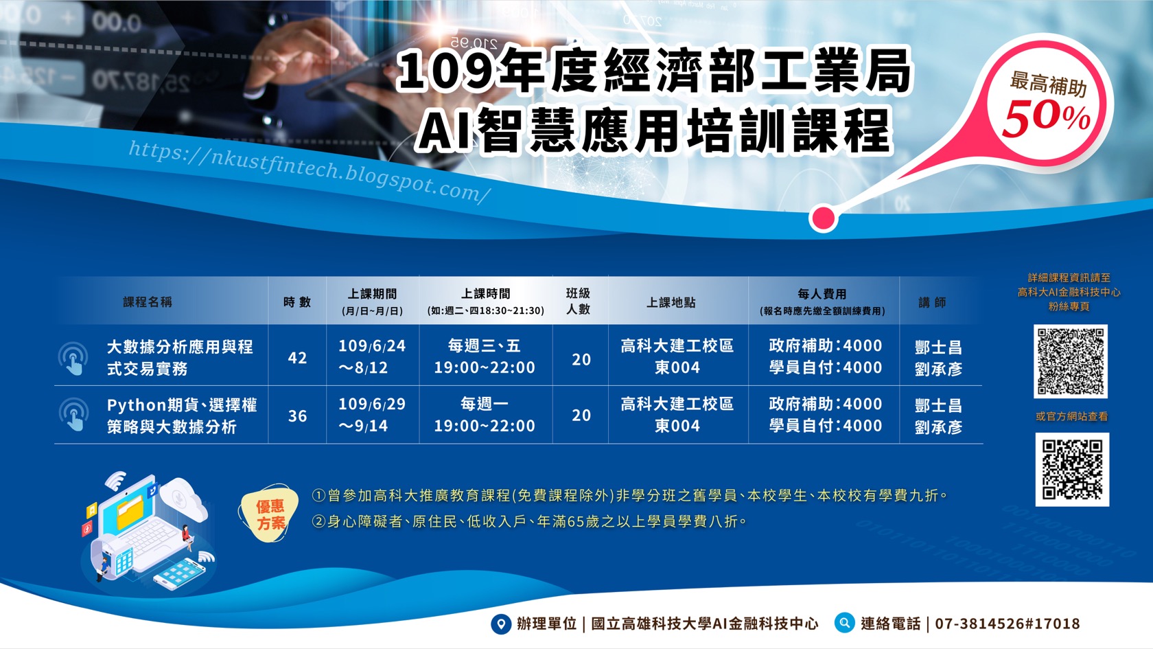 即日起開始報名,詳細課程與報名方式請至http://nkustfintech.blogspot.com/查看,名額有限,額滿為止。