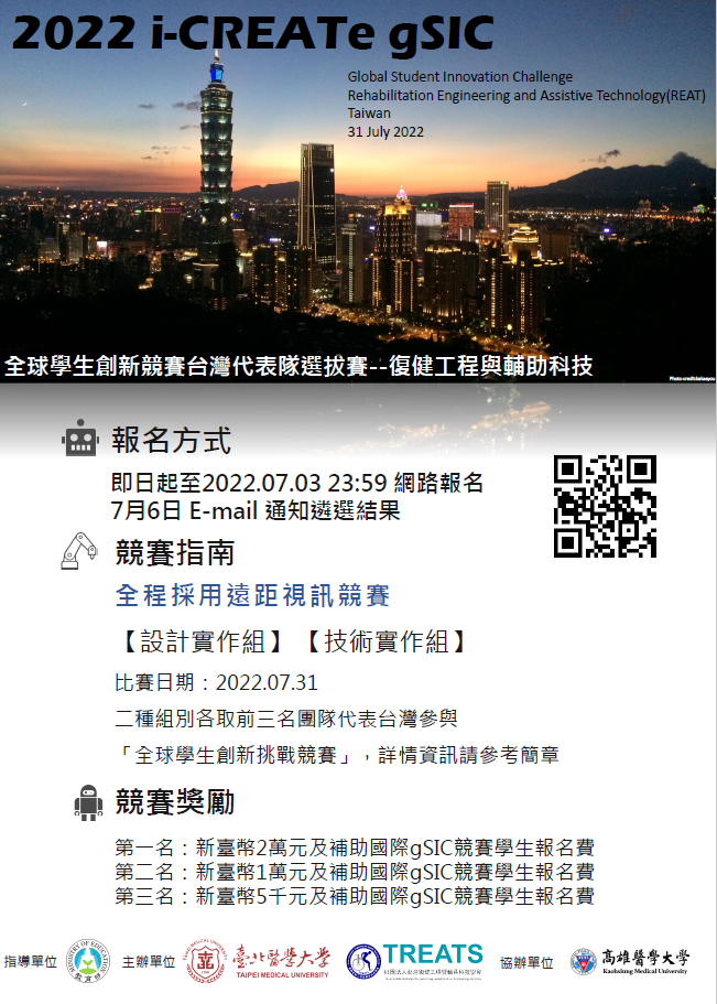 [競賽]2022年 i-CREATe gSIC 全球學生創新挑戰賽──復健工程與輔具科技臺灣選拔賽