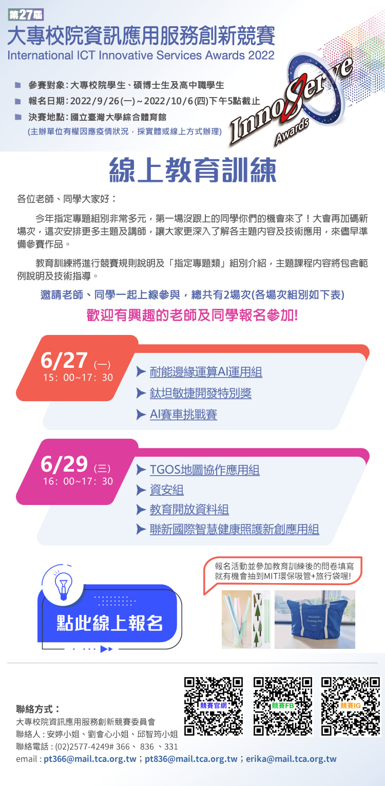 [競賽]2022第27屆大專校院資訊應用服務創新競賽_教育訓練