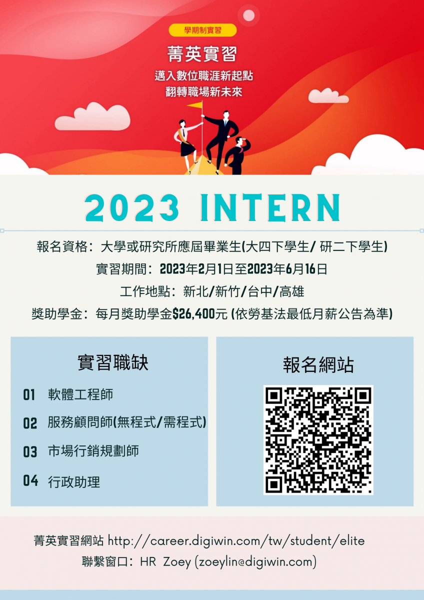 實習對象:2023年大學/二技/碩士應屆畢業生(實習留任接軌就業)
