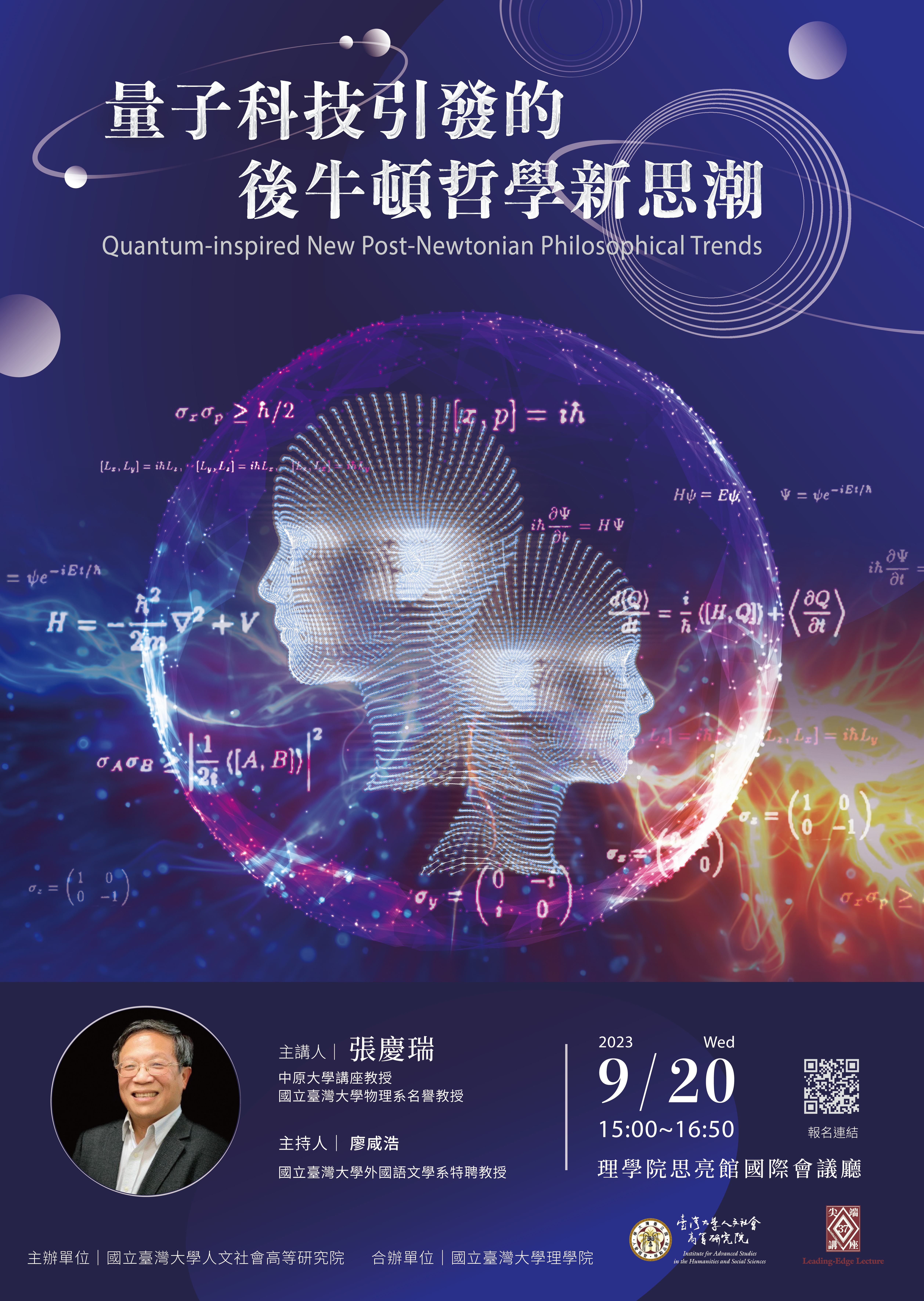 講題:量子科技引發的後牛頓哲學新思潮 (Quantum-inspired New Post-Newtonian Philosophical Trends)