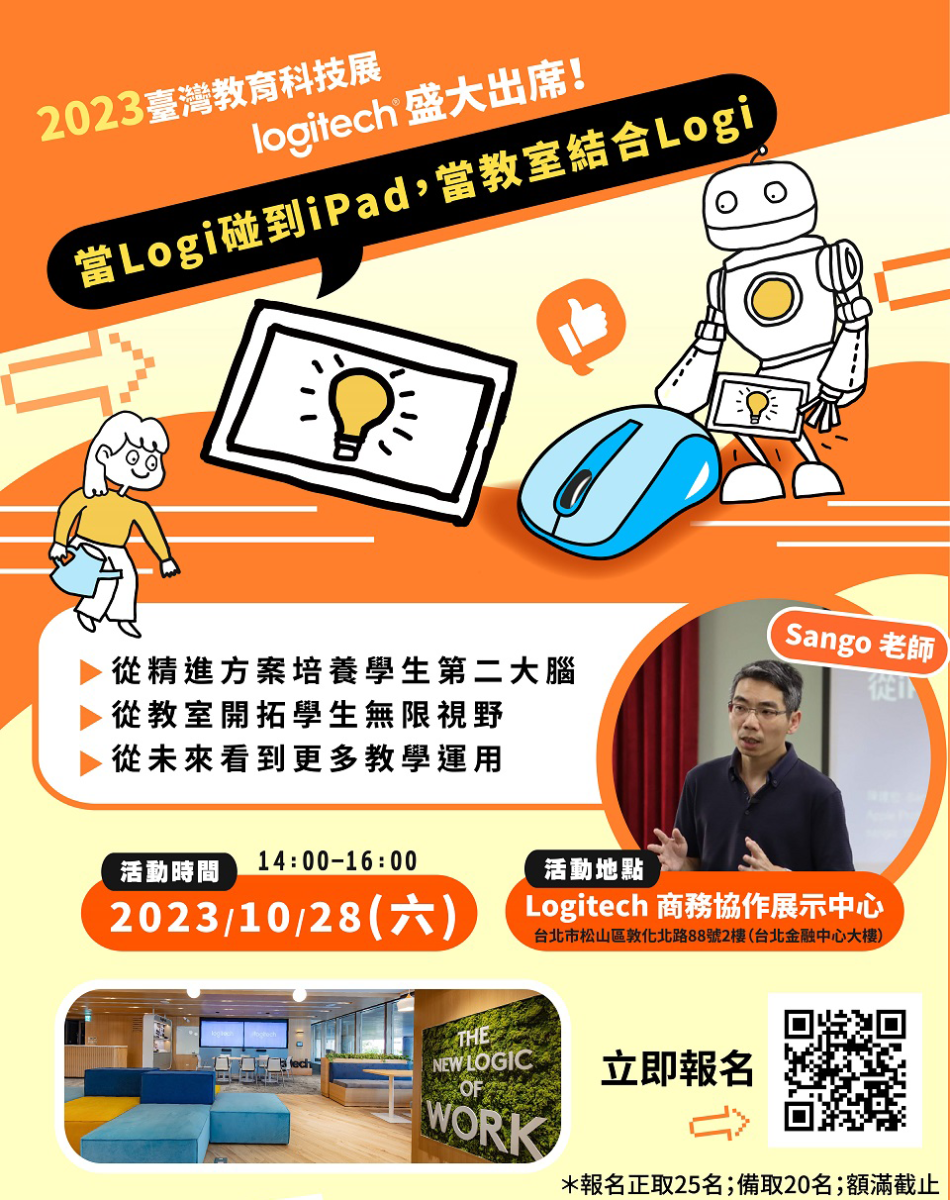 【當Logi碰到iPad,當教室結合Logi】Logitech × EdTechTW 體驗活動|5分鐘填問卷 再....