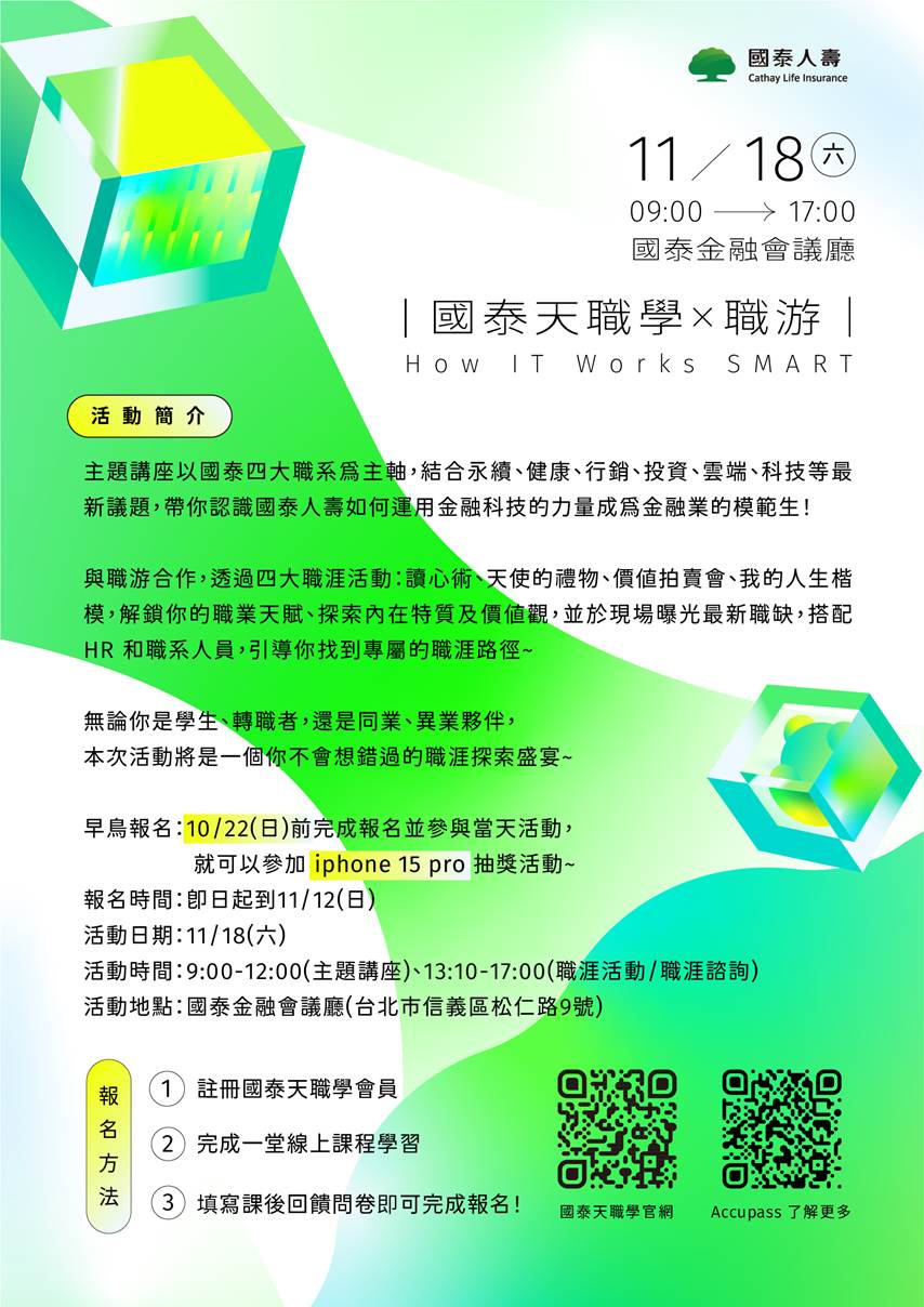 國泰天職學線下活動: |國泰天職學X職游|How IT Works SMART