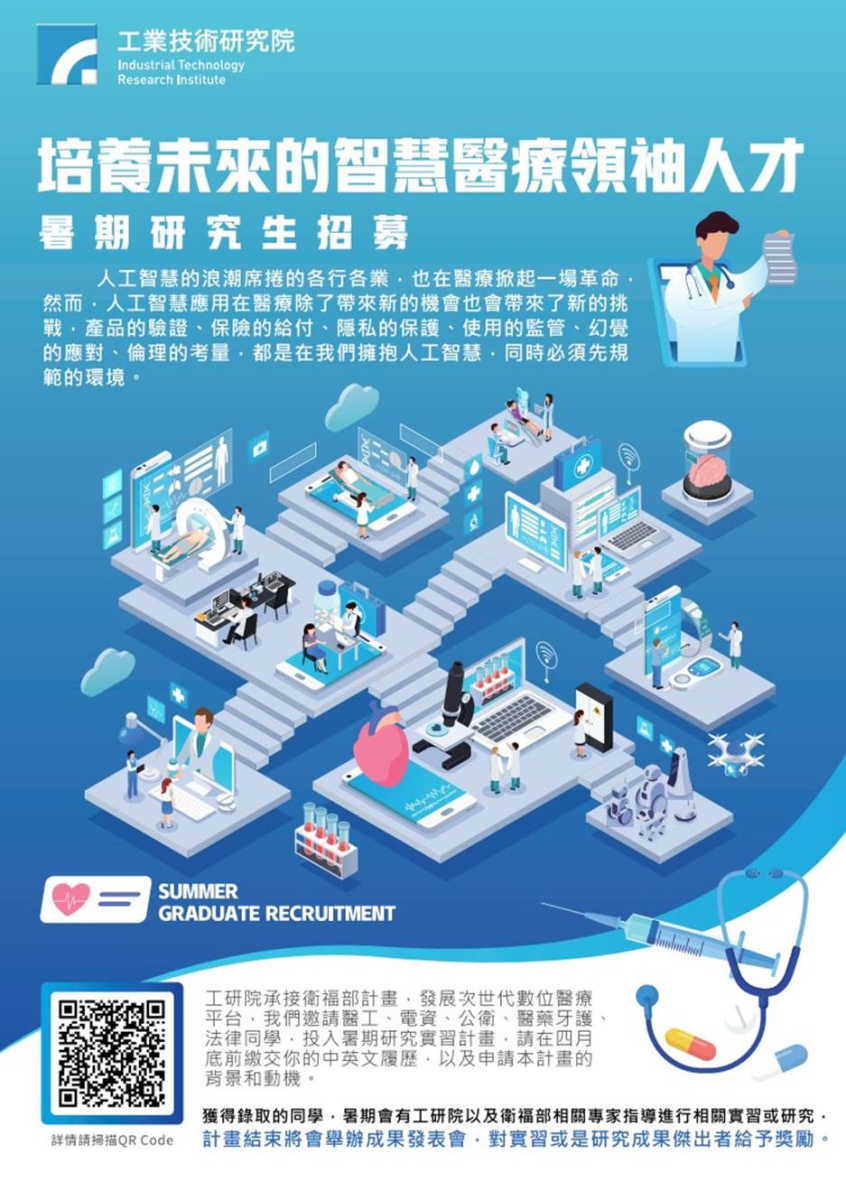 快來加入工研院產科國際所_衛福部/培養未來的智慧醫療領袖人才 2024暑期實習生