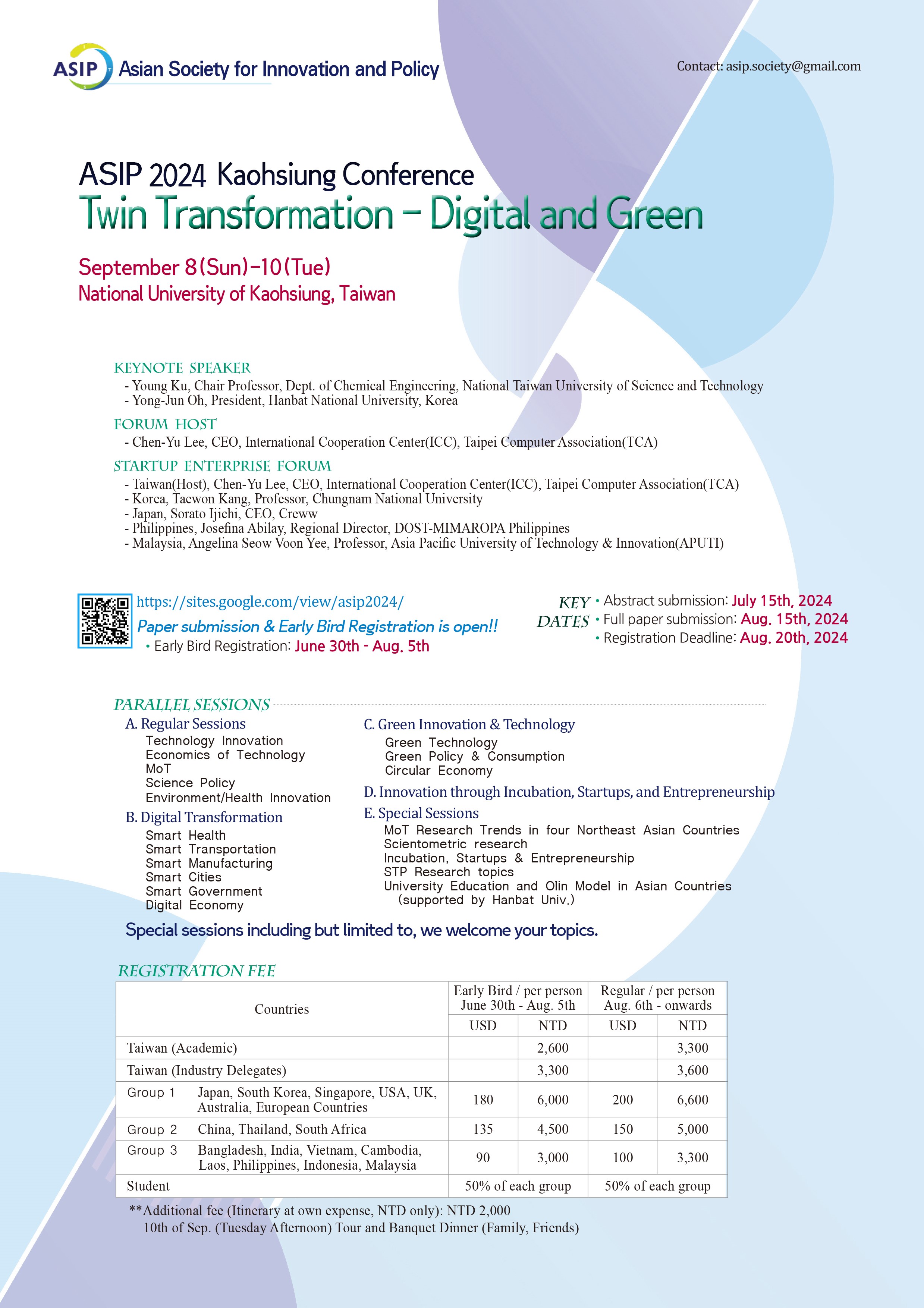The ASIP annual conference is run in locations across ASIA and is supported by an international network of academics and practitioners. The purpose of the conference is to enhance academic networking and provide a platform for the publication of academic research. The theme chosen for the conference is “Twin Transformation - Digital and Green”, and it is intended to reflect, in part, the strategic vision of both ASIP and the National University of Kaohsiung, allowing for conference discourse and impactful output across ASIA.