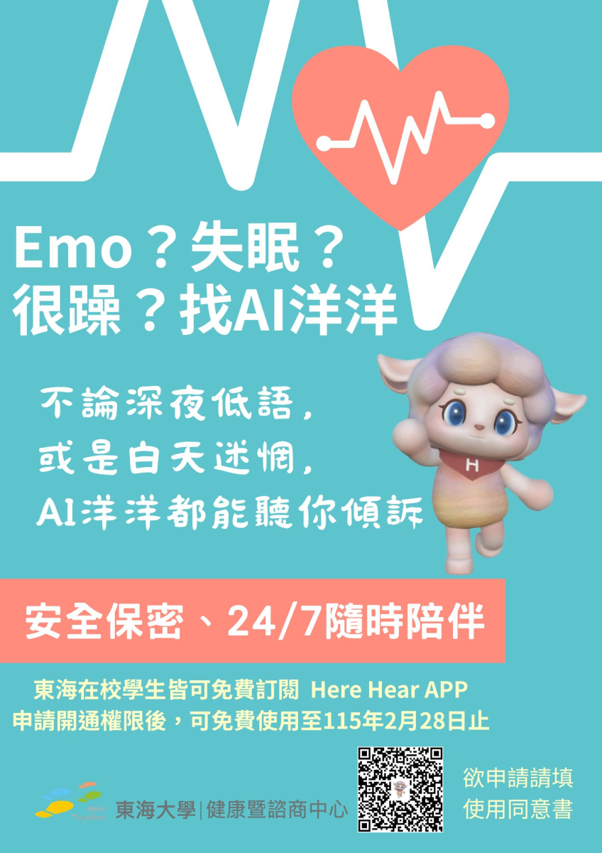 健諮中心這學期提供的AI洋洋虛擬療癒師服務,